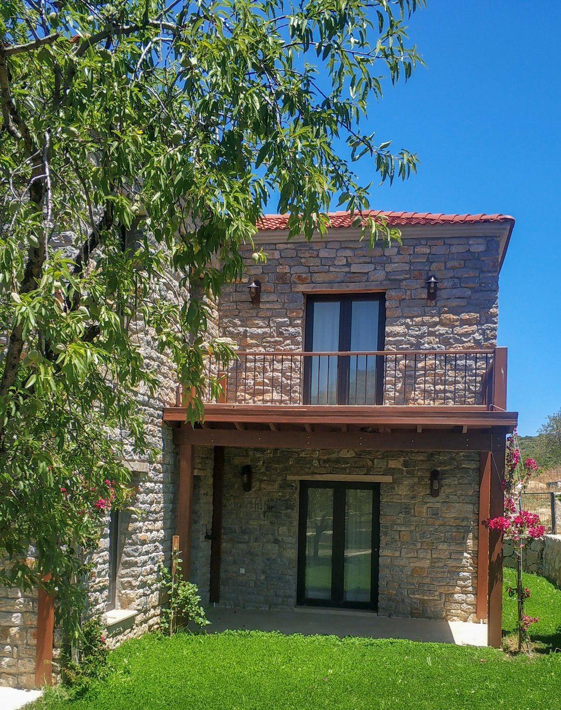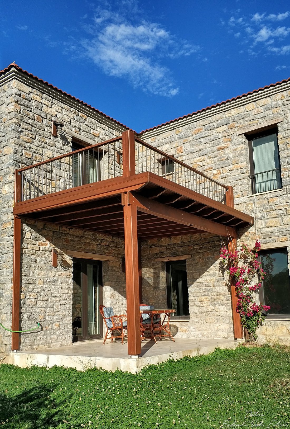 Each of our houses consists of 4 rooms, 4 bathrooms, a large living room and a kitchen. Each room has its own bathroom, a wooden balcony with a view of the valley, and each of the areas on the ground floor has its own garden and terrace areas with a view of the valley.