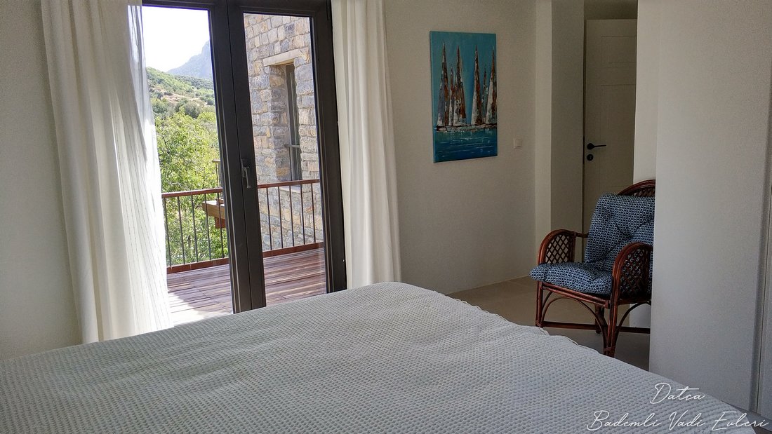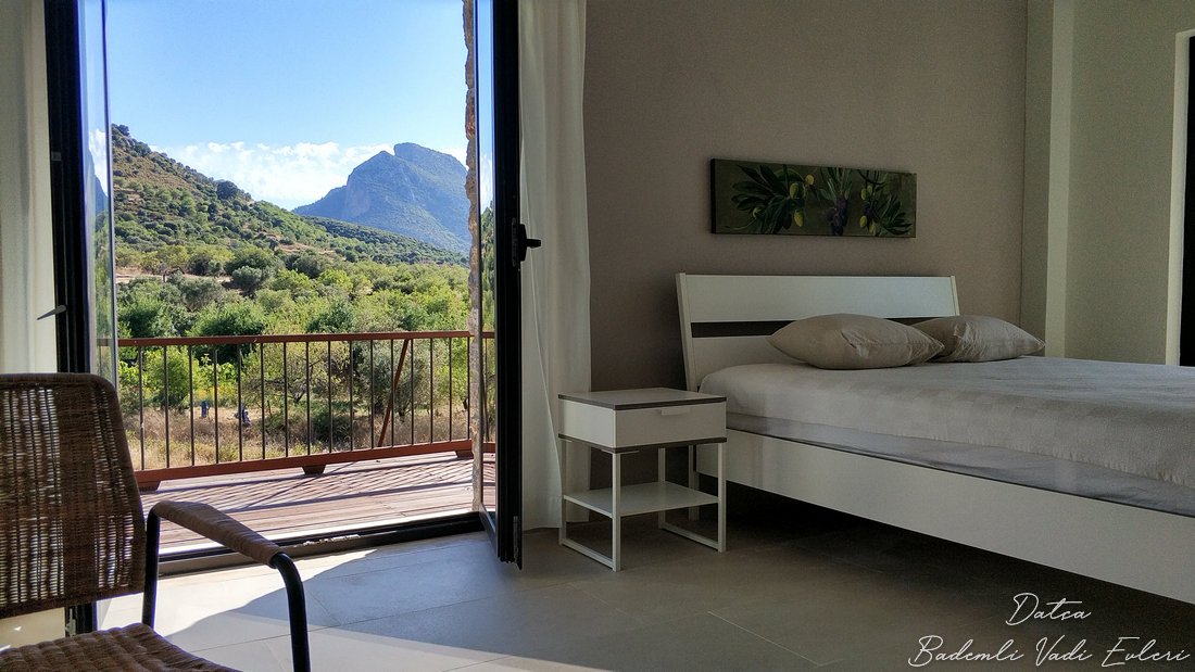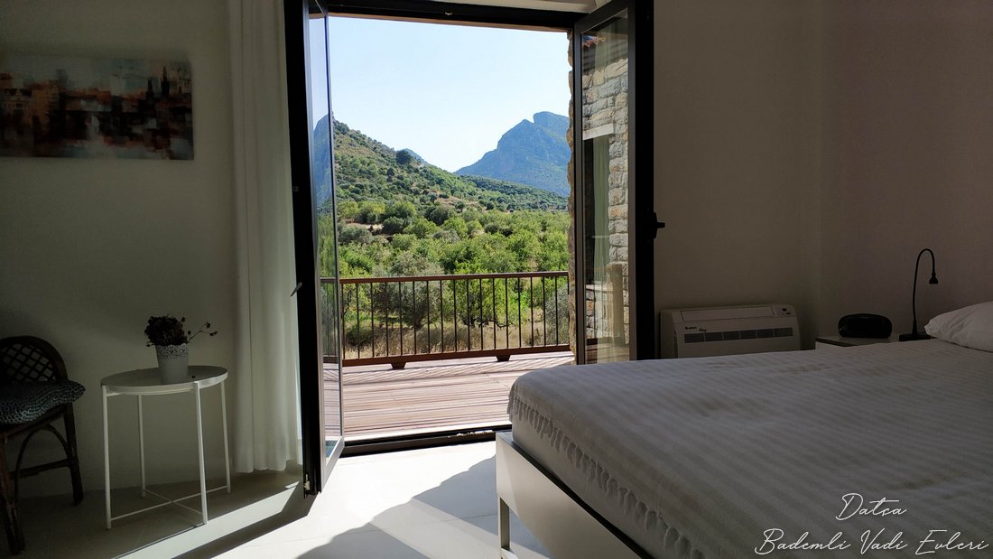 Datca Almond Valley Houses overlooks to the famous Hızırşah valley filled with almond trees surrounded by Babadağ and Bozdağ mountain. Almond valley, turns the view of our houses into an insatiable spectacle area. Our houses are also on the most popular trekking routes of Datca.