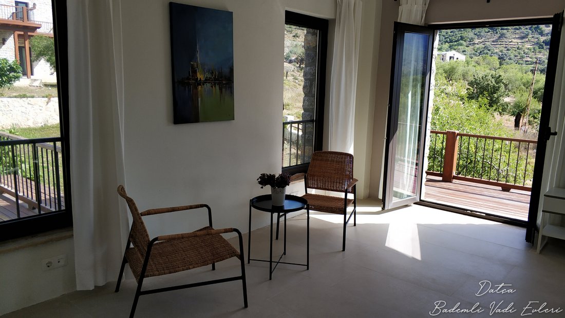 Datca Almond Valley Houses has a magnificent view overlooking the Hızırşah valley. While it gives the opportunity to have a peaceful and comfortable holiday, to those who bring their work with them also offer the opportunity to work remotely with its fiber internet infrastructure.